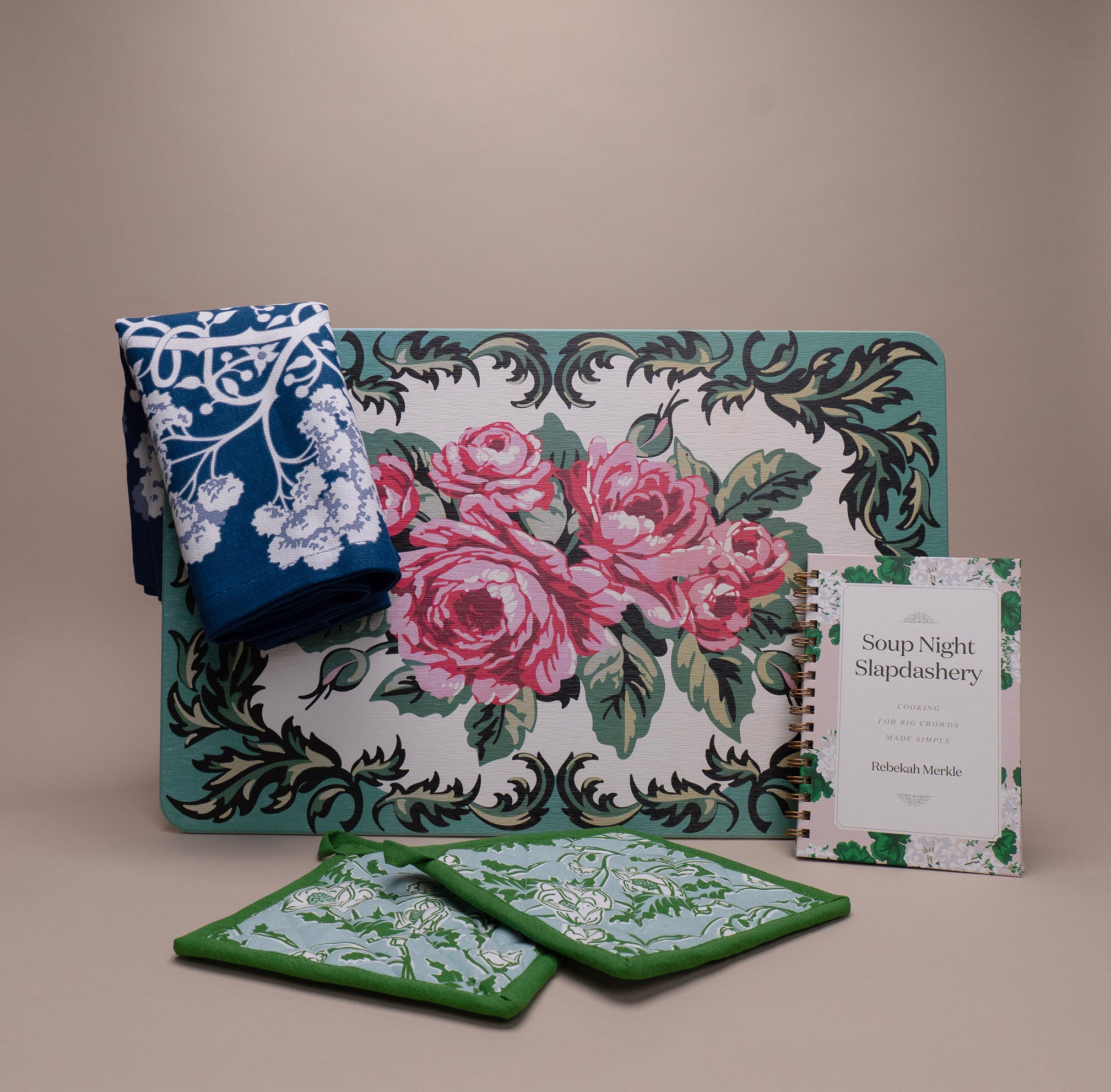 For the women feeding crowds this season, we put together this limited time collection! Bundle the table runner, the Rosetta stone, and the Soup Night Slapdashery cookbook, get a set of 2 potholders free!